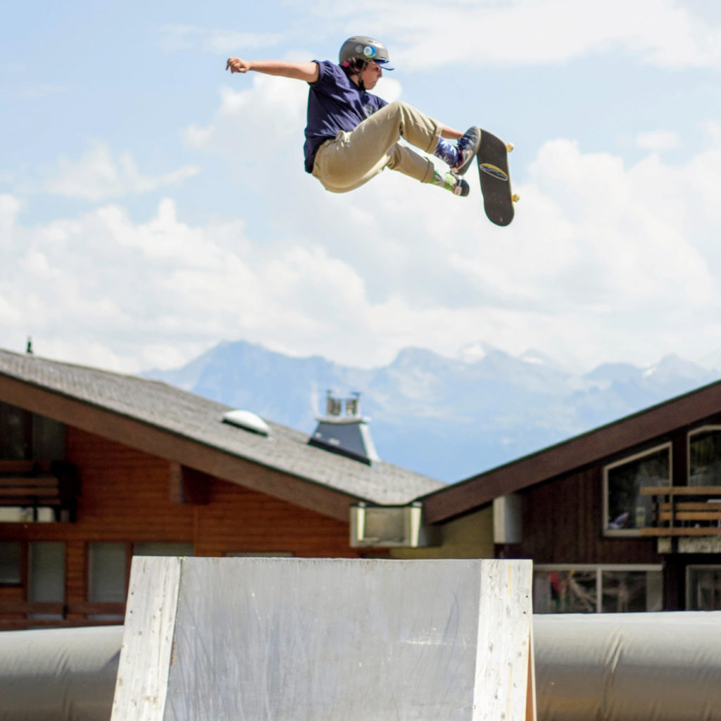 Depending on the availability of a suitable run-up, a jump can be constructed next to our Box-Park allowing for use with rollerblades.